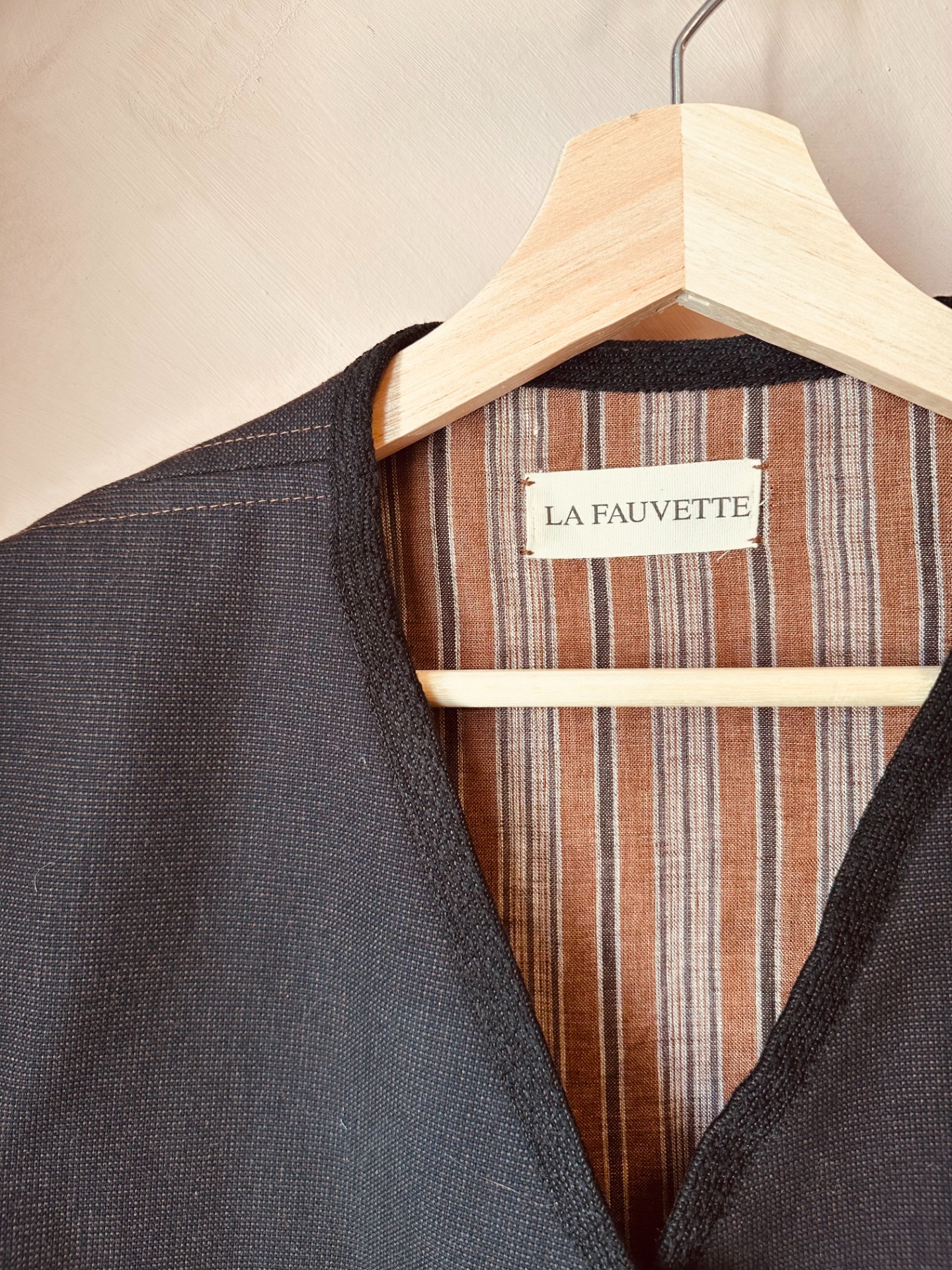 Lavet i det blødeste vintage uld i næsten helt sort med en brun tråd, hør/bomuld indeni og alle sømme beklædt med vintage bånd. Edderfuglen er almindelig omkring en af mine yndlingsøer i Dk, Bornholm. Men det betyder også 'smuk og elegant'. At bære en vest kan pynte mange outfits. Passer til en størrelse medium